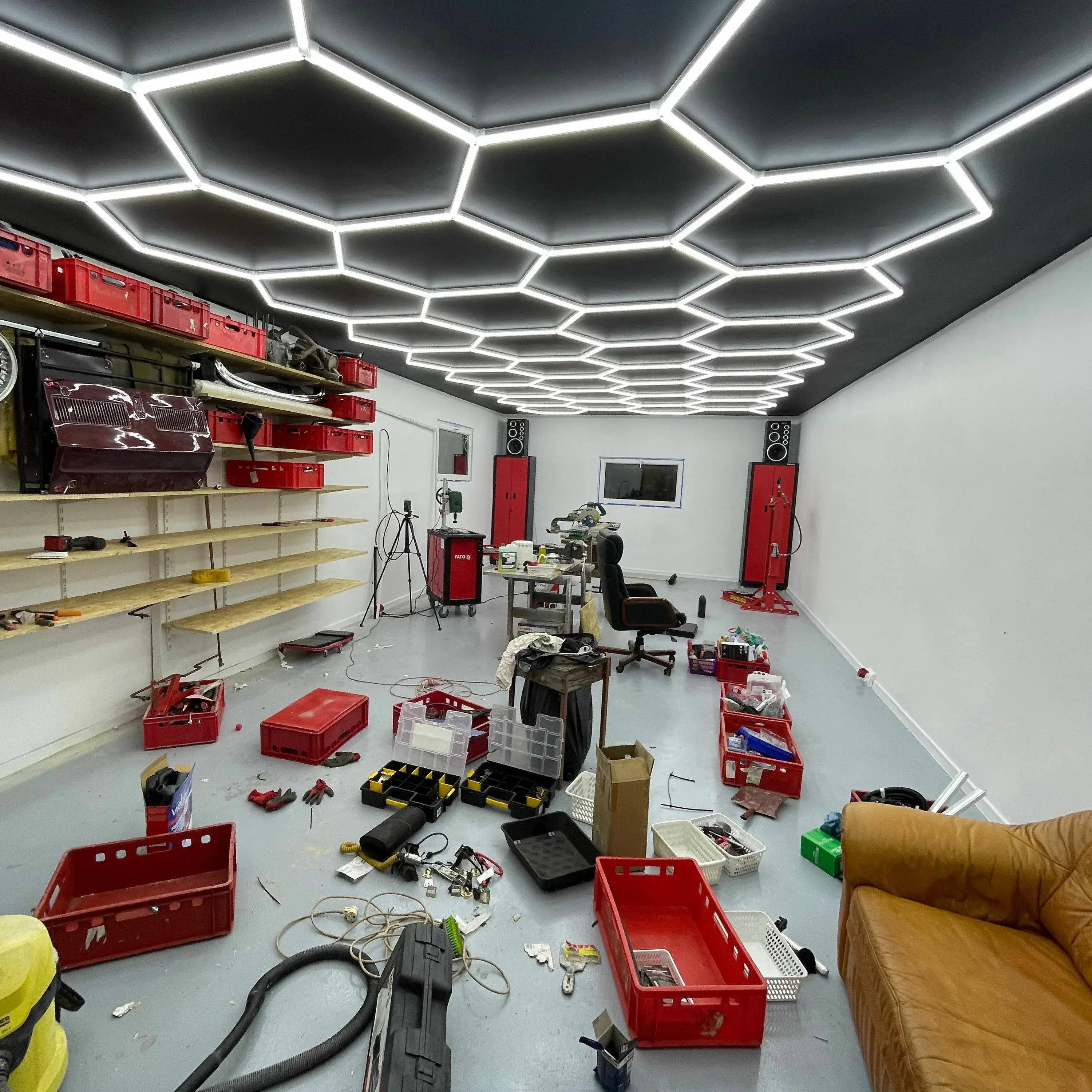 Browse our portfolio of completed projects showcasing the dramatic transformation our hexagon LED lighting systems create. From standard residential garages to luxury car collections and workshops, our custom lighting solutions enhance functionality while creating stunning visual impact.